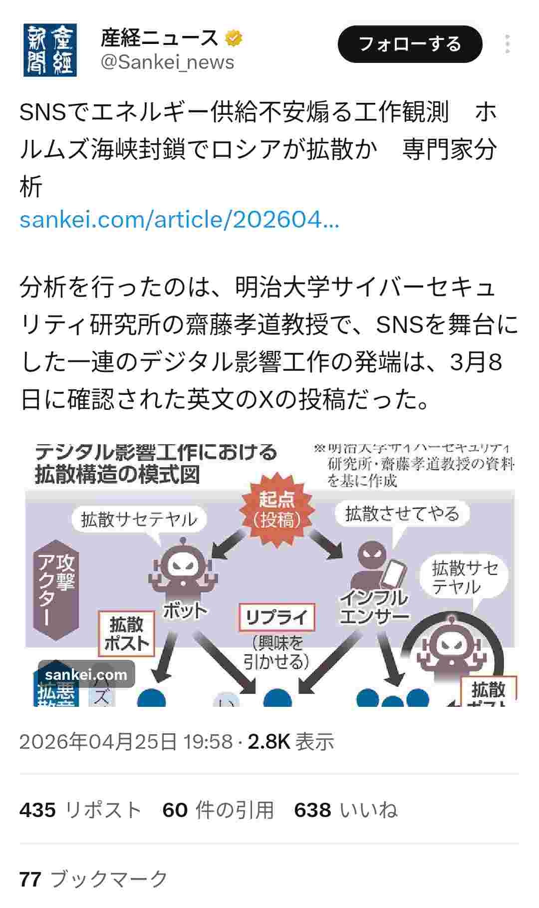こういうのは特定の方向に世論を導くというより、世論を分断させたり混乱させること自体が目的だと聞くな