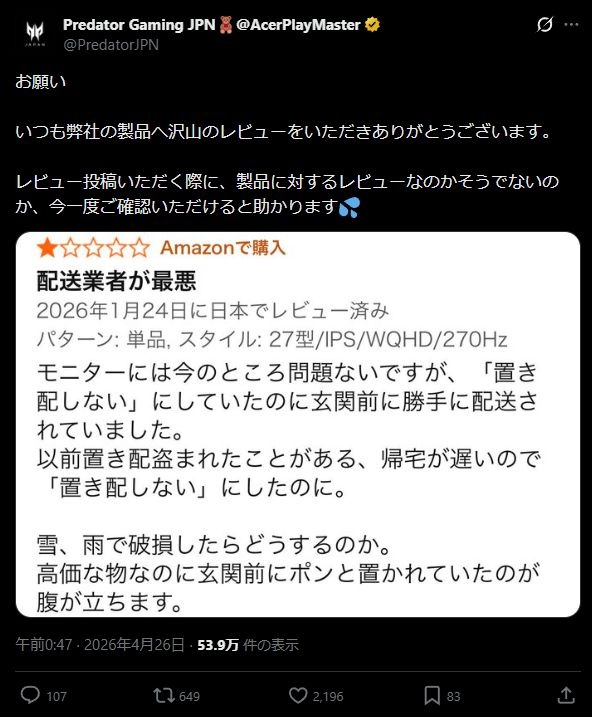 製品レビューに書いちゃう気持ちもわからんでもないが