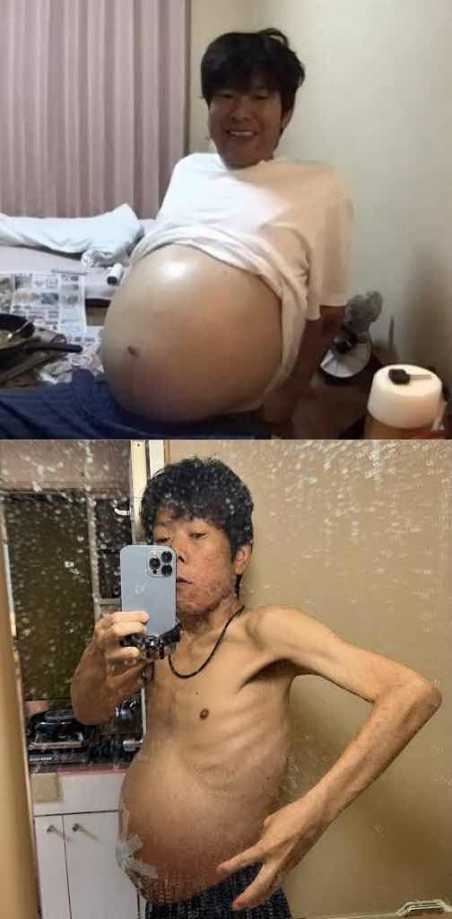 誰か知らんが完全に栄養失調で腹水溜まっとるやん