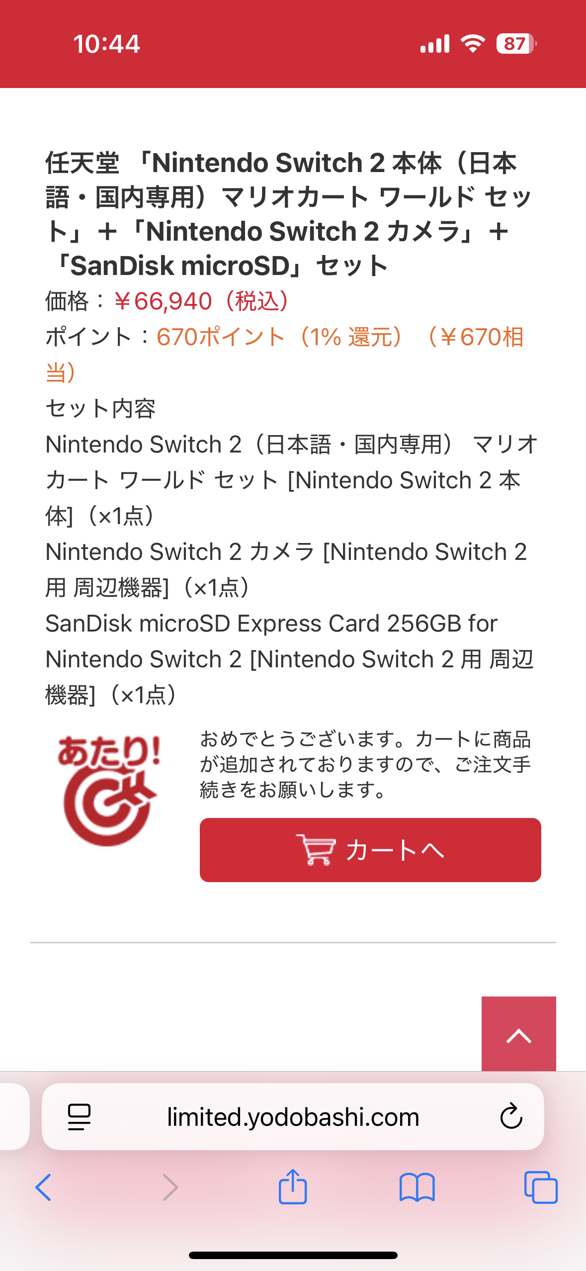 嬉しくてヨドバシの抽選ページ何回もみちゃうは