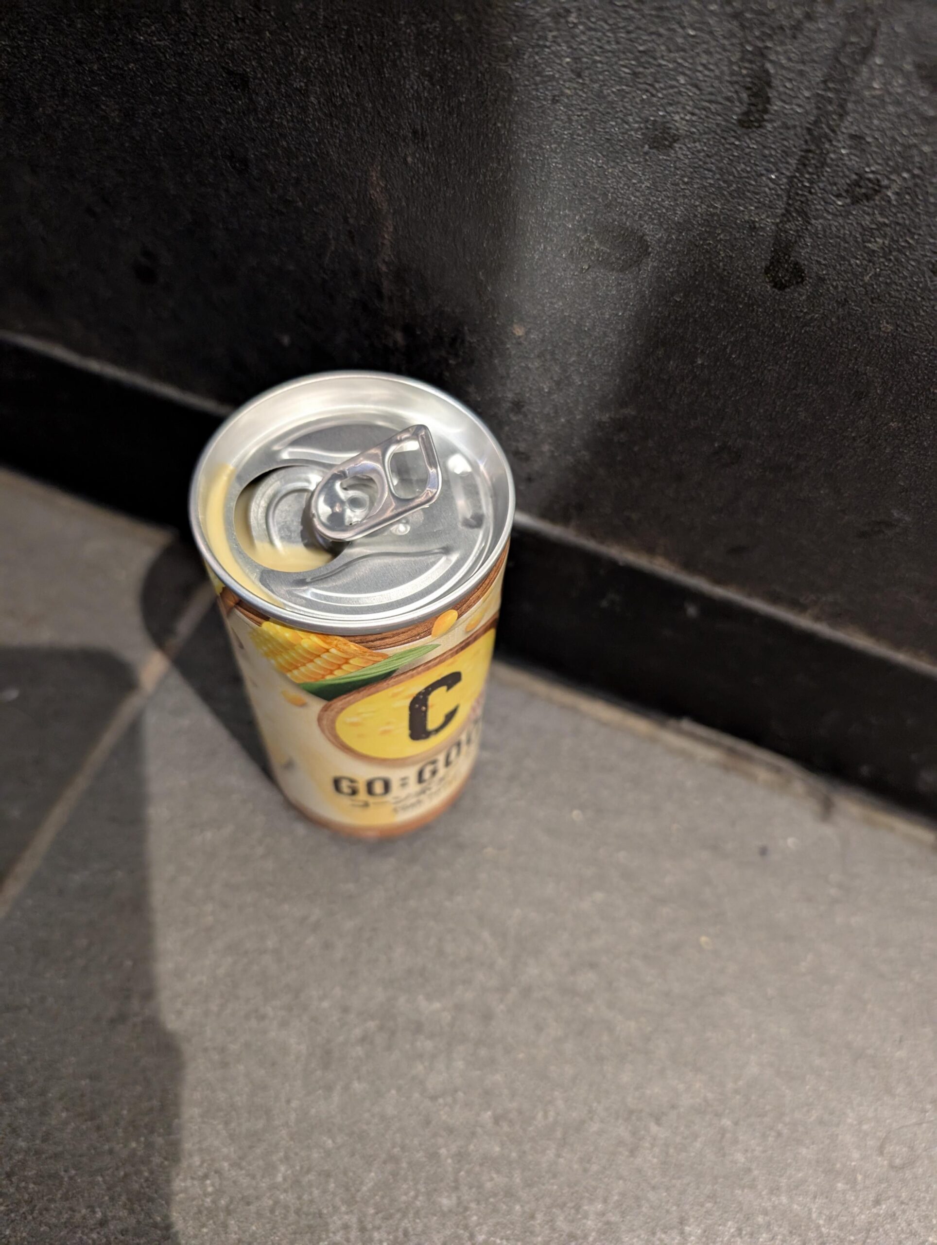 そんなに気になるなら脇に`ある空き缶入れに入れろ