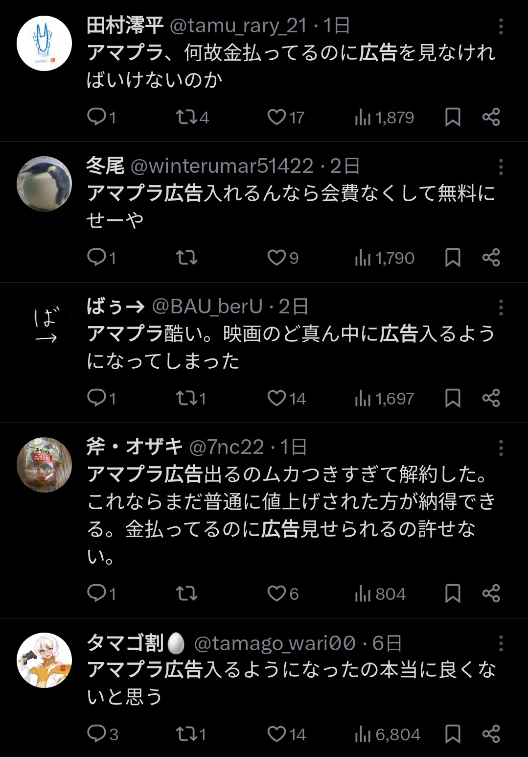 そらアマプラに金払って更に広告見せられりゃそうなるわな