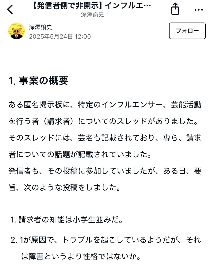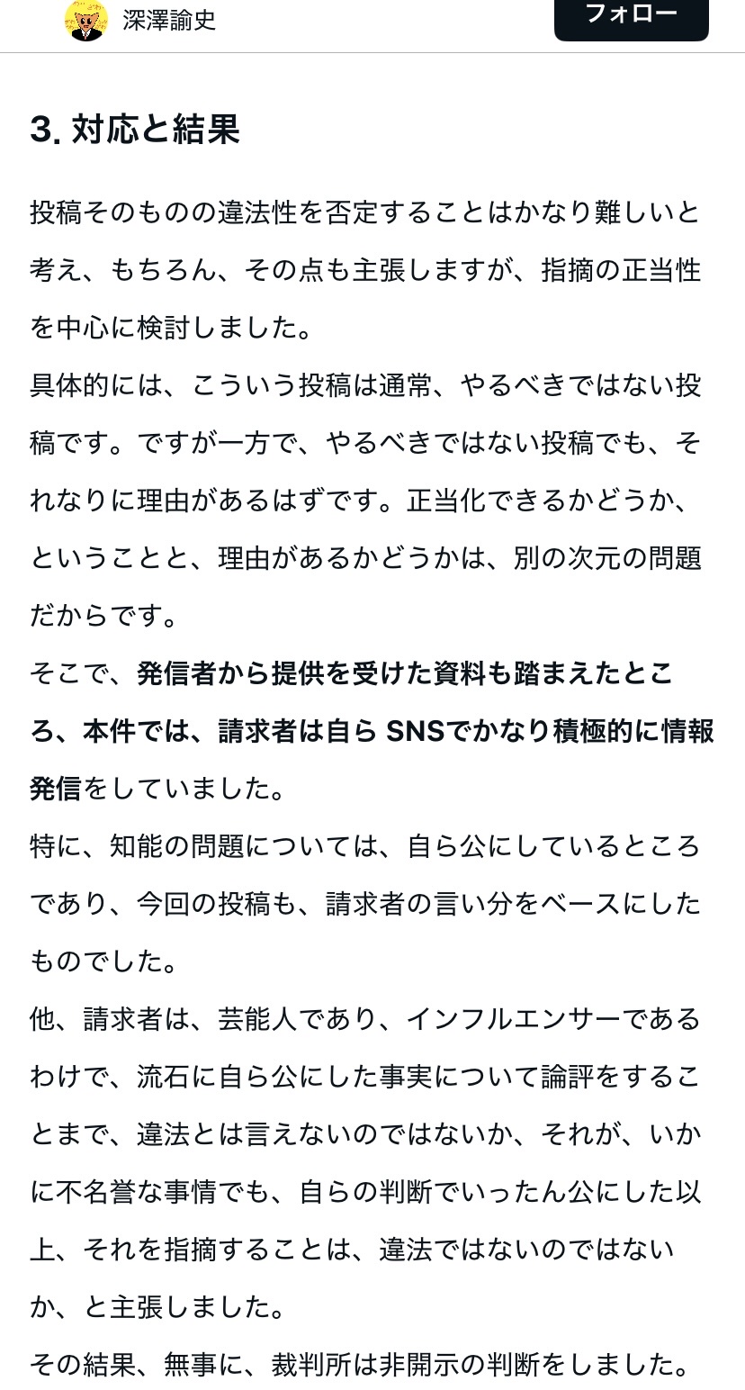 これが認められたら誹謗中傷呼び込むような芸風で開示開示ってできちゃうからな