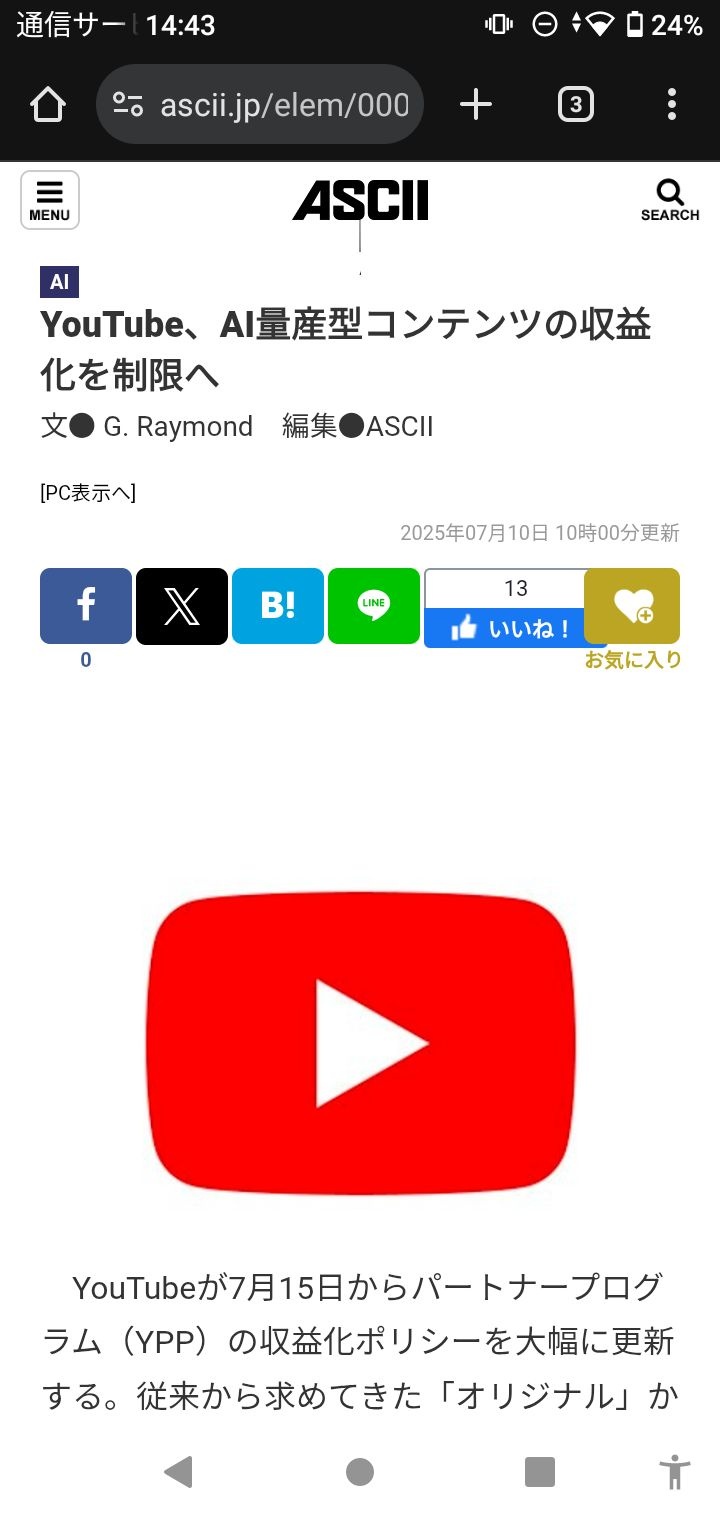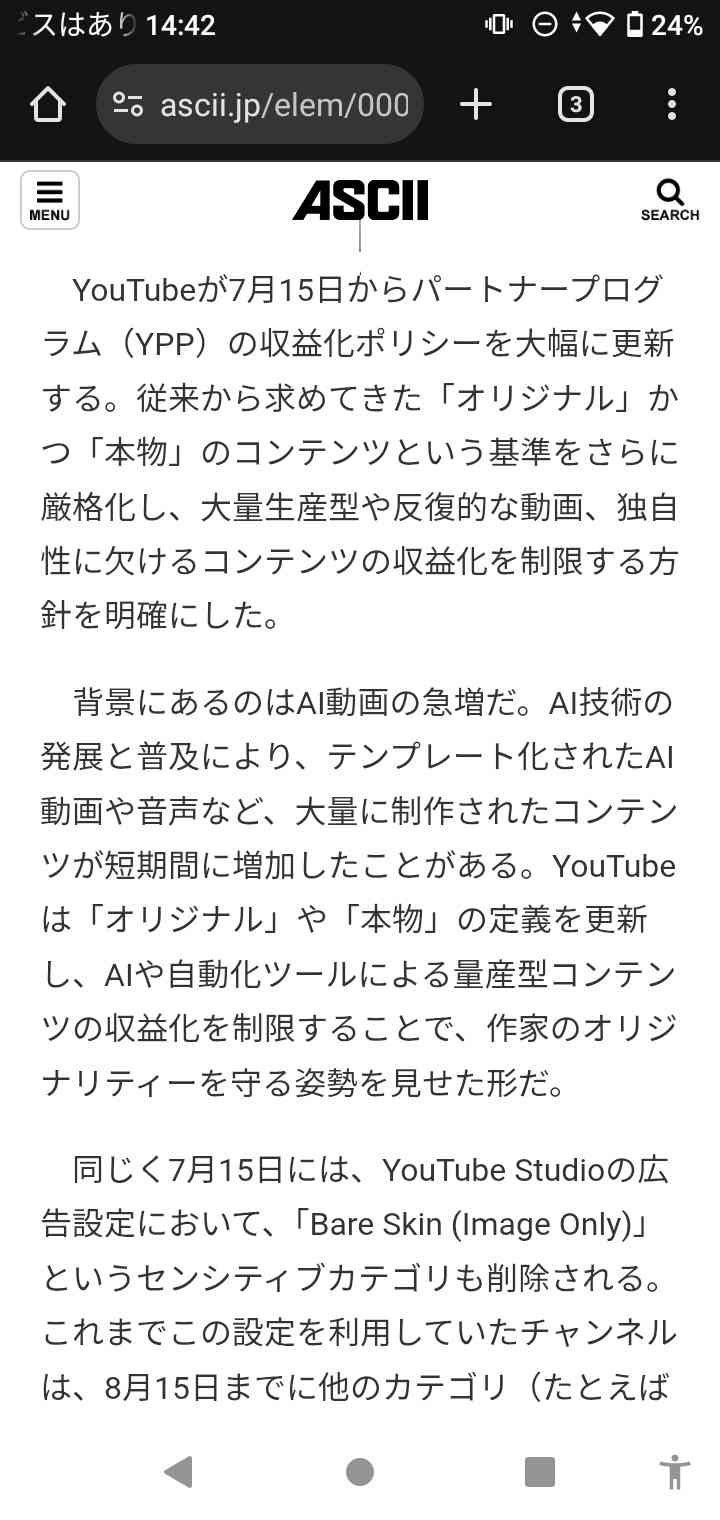 YouTubeのAIコンテンツ収益化制限がニュースになる