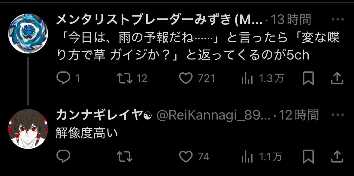 嫌儲もそうだけどVIPとかなんGとかそんな所ばかり行って5ch全体を知った気になっていればこう言う勘違いはするかもしれん