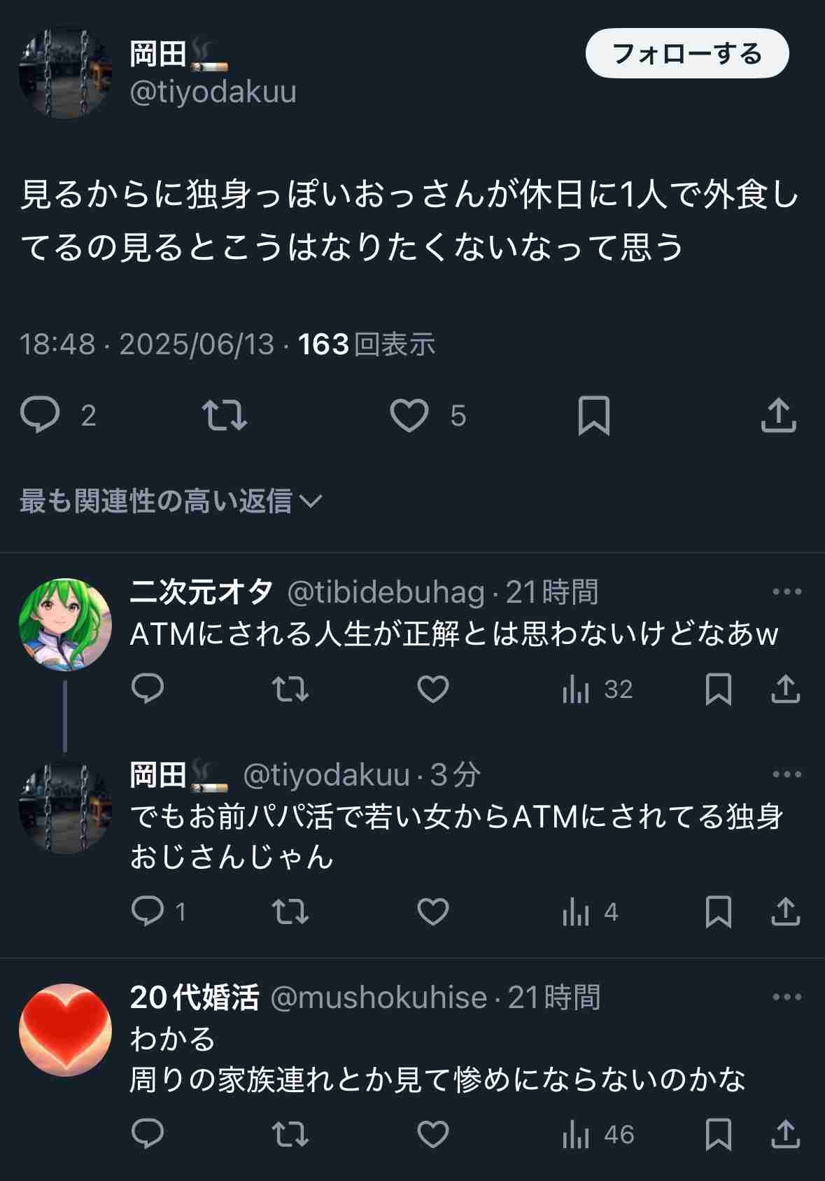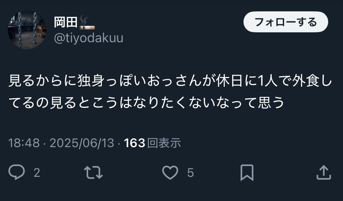 休日に一人飯するのは自由だしこうはなりたくないと投稿するのは自由なのに