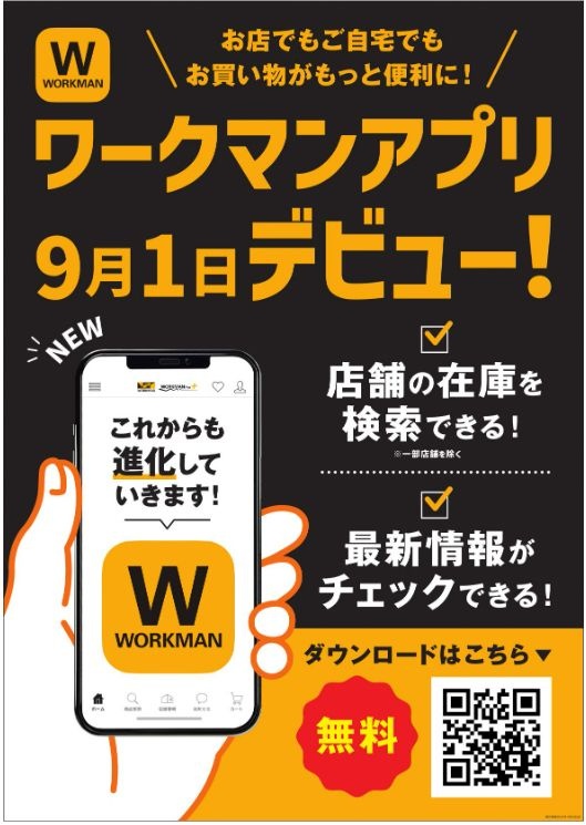 ワークマンが、初となるスマートフォンアプリをリリースする。iOSとAndroidで利用可能で、9月1日からダウンロードできる。