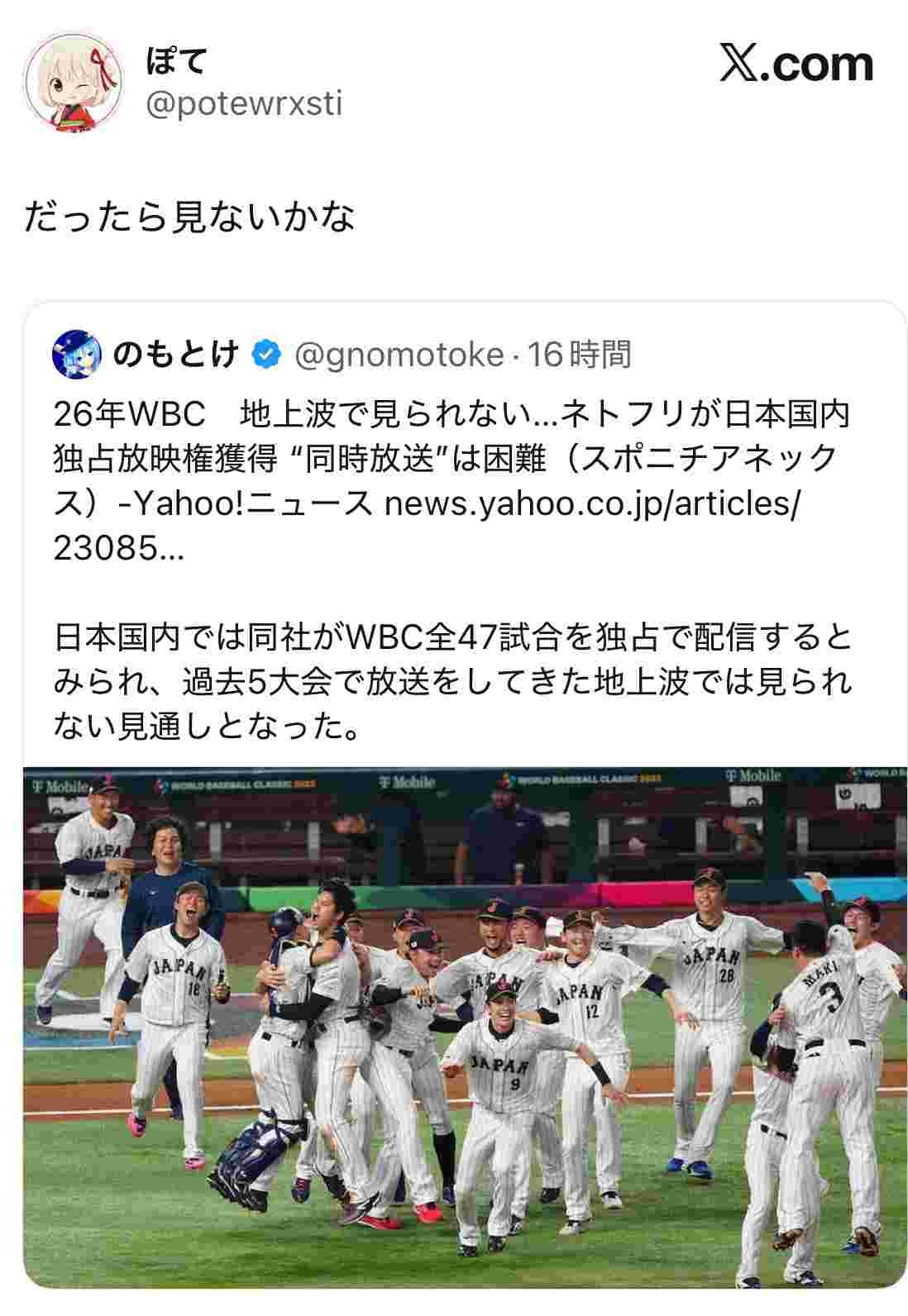 端金でWBCを楽しめるなら余裕でありだけど、どうせ乞食のバカは見られないから盛り下がるだろうなw
