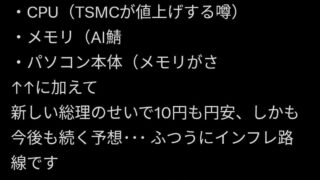 なんG 識者「値上がりするPCパーツ一覧がこちらです🥺」
