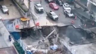 ニュー速 バンコクの大通りがごっそり陥没深さ50m、SNSに投稿された現場動画が凄まじい