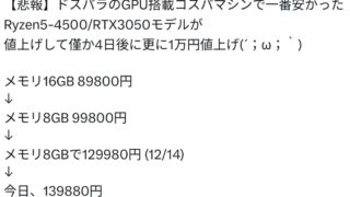 嫌儲 【アルトマン悲報】ドスパラ、16GB 89800円のPCが8GB 139880円になる…