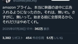 嫌儲 アマプラ、広告出るようになってユーザーが大激怒してしまうwwwwwwww