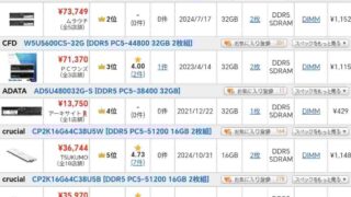 なんG DDR5メモリ、だいたい以前の価格の3倍くらいで落ち着く😄