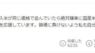 なんG ヤフコメ民「私は国産米と輸入米が同じ価格なら絶対確実に国産米を買います」
