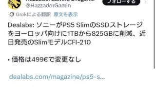 嫌儲 今月発売「PS5新モデル」お値段据え置きでSSDが1TBから825GBに減量!