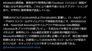 嫌儲 Windows11更新プログラム適用でローカルホスト接続が不能になる不具合www
