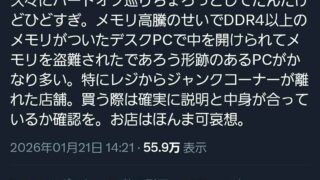 嫌儲 展示PCから高性能メモリだけ抜き取られる被害が多発www