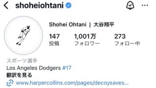 なんG 大谷翔平のインスタフォロワー1001万人www