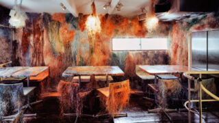 ニュー速 隈研吾が2014年に内装をデザインした焼き鳥屋がこちら。LANケーブルをリサイクルした「モジャモジャ」がインパクト抜群