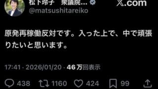 ニュー速 【中革連】原発反対宣言の松下玲子さん、ツイート削除www