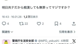 嫌儲 アホX民「今日は電車痴漢フリー日です」警視庁「逮捕します」